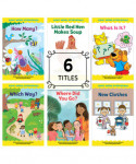 Set comes with one each of the following titles: How Many?, Little Red Hen Makes Soup, What Is It?, Which Way?, Where Did You Go?, and New Clothes.