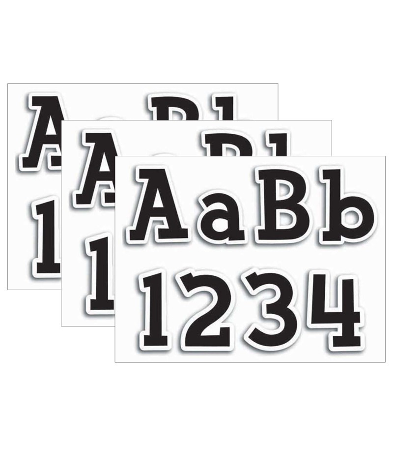 Create personalized headlines using this sleek letter set! Great for party signs, hallways, doors, rooms, offices, and more! Pieces measure 2"-4" tall. Each pack includes 210 pieces consisting of upper and lowercase letters, punctuation marks, and numbers. Sold as 3 packs for a total of 630 pieces.