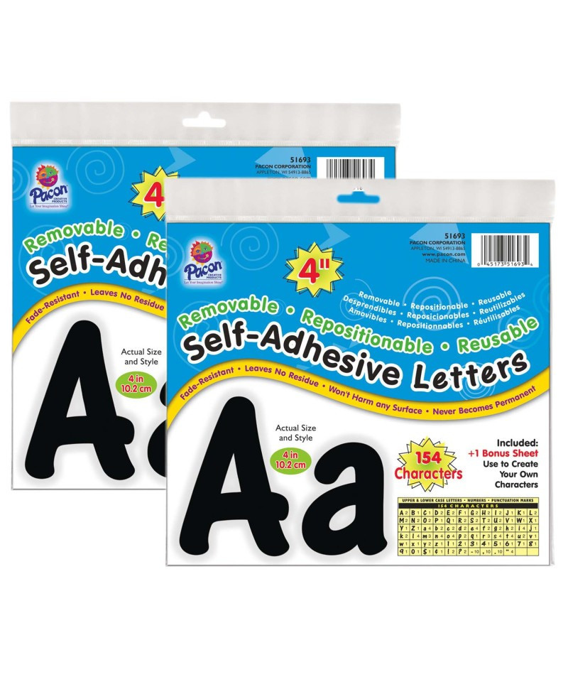 Pacon® Self-Adhesive Letters, Black, Cheery Font, 4", 154 Per Pack, 2 Packs