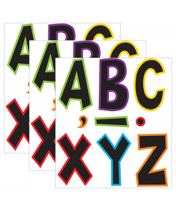 Lively letters, limitless possibilities! Convenient, reusable, and easy to use. Great for student work displays, bulletin boards, signs, banners, news boards, learning activities, labeling, and much more! Fade-resistant colors coordinate with TREND products. Durable. Each pack includes 50 uppercase letters, 10 numerals 0-9, 11 punctuation marks, and 1 blank sheet. Sold as 3 packs.