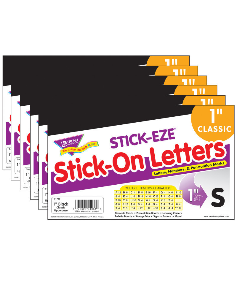 - Each pack includes 184 uppercase letters, 90 punctuation marks, 50 numerals. 1" height.