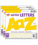 Lively letters, limitless possibilities! Convenient, reusable, and easy to use. Great for student work displays, bulletin boards, signs, banners, news boards, learning activities, labeling, and much more! Fade-resistant colors coordinate with TREND products. Durable. Each pack includes 50 uppercase letters, 82 lowercase letters, 21 numerals 0-9, 44 punctuation marks, 28 Spanish accent marks, and 1 blank sheet. Sold as 3 packs.