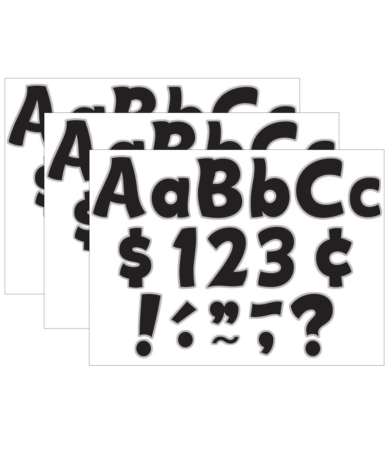 Use these letters to create bulletin boards, classroom centers, signs, banners, and other displays. They punch out easily and are coated for durability. The colors and designs coordinate with popular decorative products from Teacher Created Resources. Each letter is approximately 4". Each 208-piece pack includes: 55 uppercase letters, 84 lowercase letters, 20 numbers (0-9), 35 punctuation marks and 14 Spanish accents. Sold as 3 packs, 624 characters total.