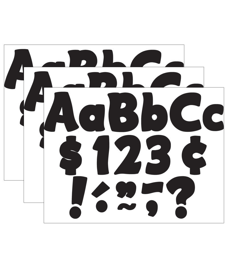 Use these letters to create bulletin boards, classroom centers, signs, banners, and other displays. They punch out easily and are coated for durability. Each letter is 4". Each pack includes 208 pieces: 55 uppercase letters, 84 lowercase letters, 20 numbers 0-9, 35 punctuation marks, and 14 Spanish accent marks. Sold as 3 packs for a total of 624 pieces.