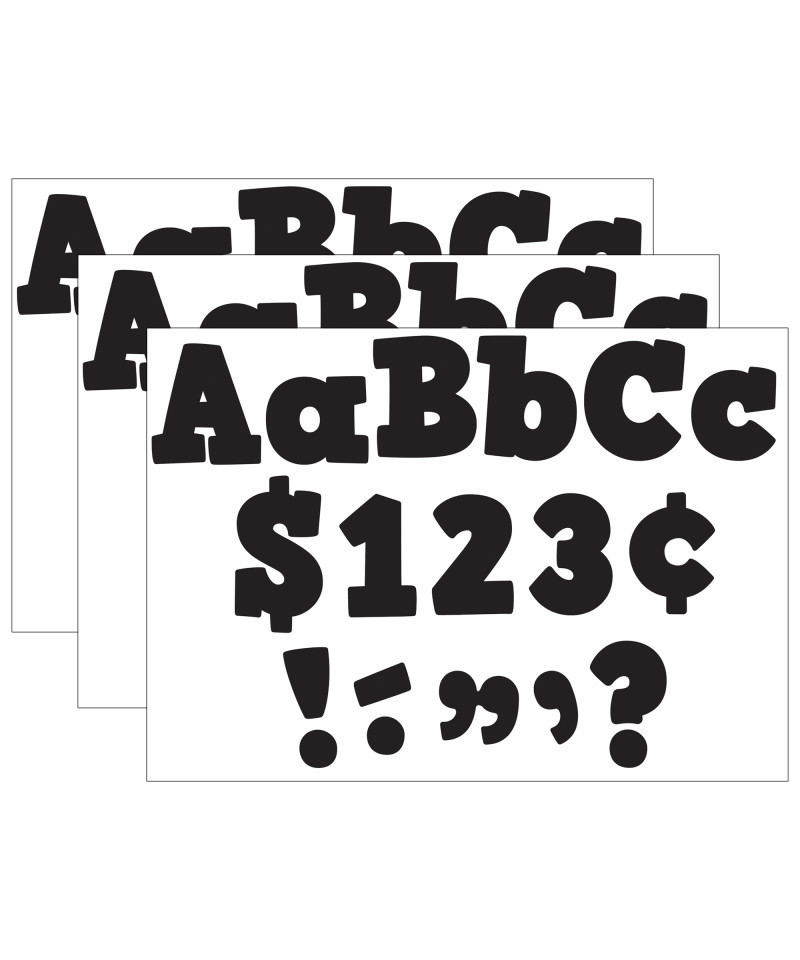 Use these letters to create bulletin boards, classroom centers, signs, banners, and other displays. They punch out easily and are coated for durability. The colors and designs coordinate with popular decorative products from Teacher Created Resources. Each 230-piece pack includes: 61 uppercase letters, 95 lowercase letters, 20 numbers (0-9), 40 punctuation marks and 14 Spanish accent marks. Sold as 3 packs for a total of 690 characters.