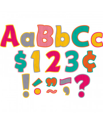 Use these letters to create bulletin boards, classroom centers, signs, banners, and other displays. They punch out easily and are coated for durability. The colors and designs coordinate with popular decorative products from Teacher Created Resources. Each letter is approximately 4". Each 208-piece pack includes: 55 uppercase letters, 84 lowercase letters, 20 numbers (0-9), 35 punctuation marks and 14 Spanish accents. Sold as 3 packs, 624 characters total.
