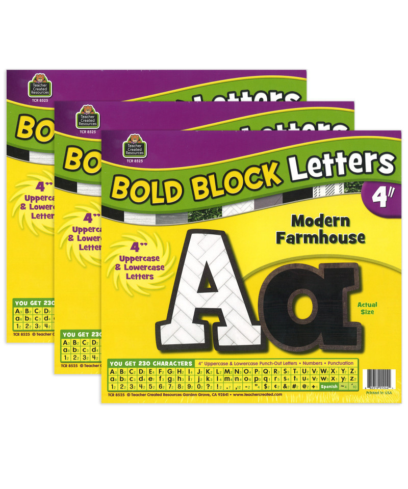 Teacher Created Resources® Modern Farmhouse Bold Block 4" Letters Combo Pack, 230 Pieces Per Pack, 3 Packs