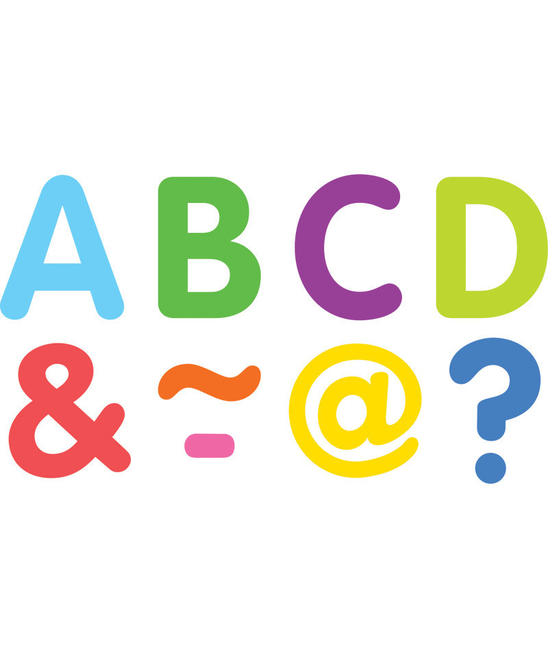 Decorate your whiteboard in a snap with durable, reusable magnetic decor! Add flair on other metal surface such as doors, desks, shelving, and bins. Each pack includes 87 pieces: 68 letters and 19 punctuation marks.