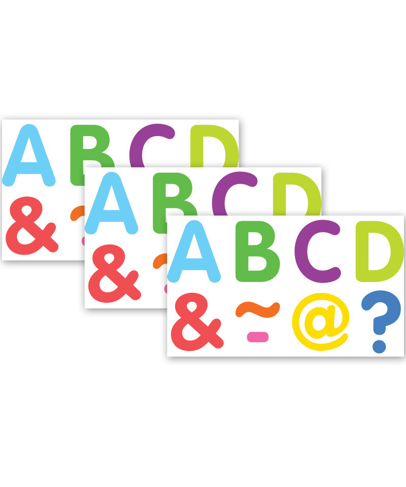 Decorate your whiteboard in a snap with durable, reusable magnetic decor! Add flair on other metal surface such as doors, desks, shelving, and bins. Each pack includes 87 pieces: 68 letters and 19 punctuation marks. Sold as 3 packs for a total of 261 pieces.