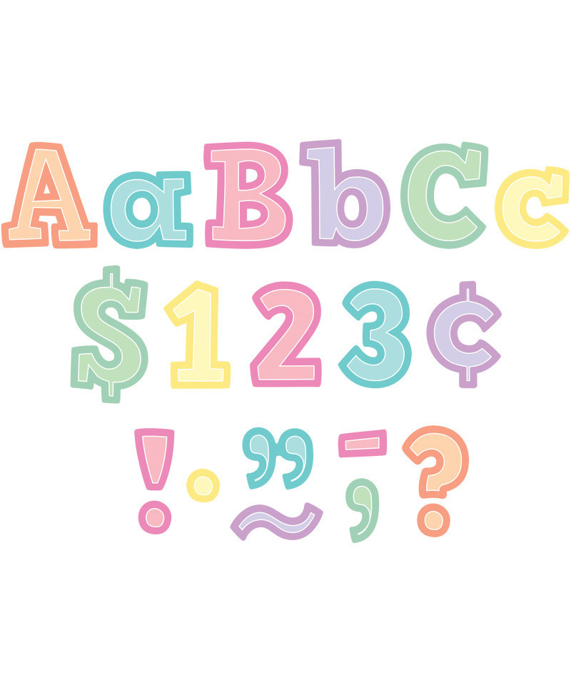 Use these letters to create bulletin boards, classroom centers, signs, banners, and other displays. They punch out easily and are coated for durability. Each pack includes 230 total pieces: 61 uppercase letters, 95 lowercase letters, 20 numbers 0 to 9, 40 punctuation marks, 14 Spanish accent marks. Sold as 2 packs for a total of 460 pieces.