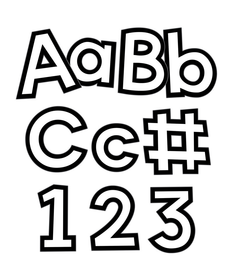 Add timeless messages to bulletin board, cork board, and other white and black décor using the Carson Dellosa Black and White Bulletin Board Letters Pack! The 219-piece classroom wall décor set includes 70 uppercase letters and 87 lowercase letters for bulletin board displays, 20 numbers, and 20 punctuation marks, and 22 symbols in a white design with sleek, black trim. Each of the letters, numbers, punctuation, and symbol bulletin board decorations measures 4" tall—the perfect size for alphabet wall decals, party or bulletin board décor, and modern classroom décor. Use the cut out letters to create a letter board, display board, alphabet line for classroom wall, and number line for classroom wall, or decorate cork board, bulletin board, and chalk board displays with ease.