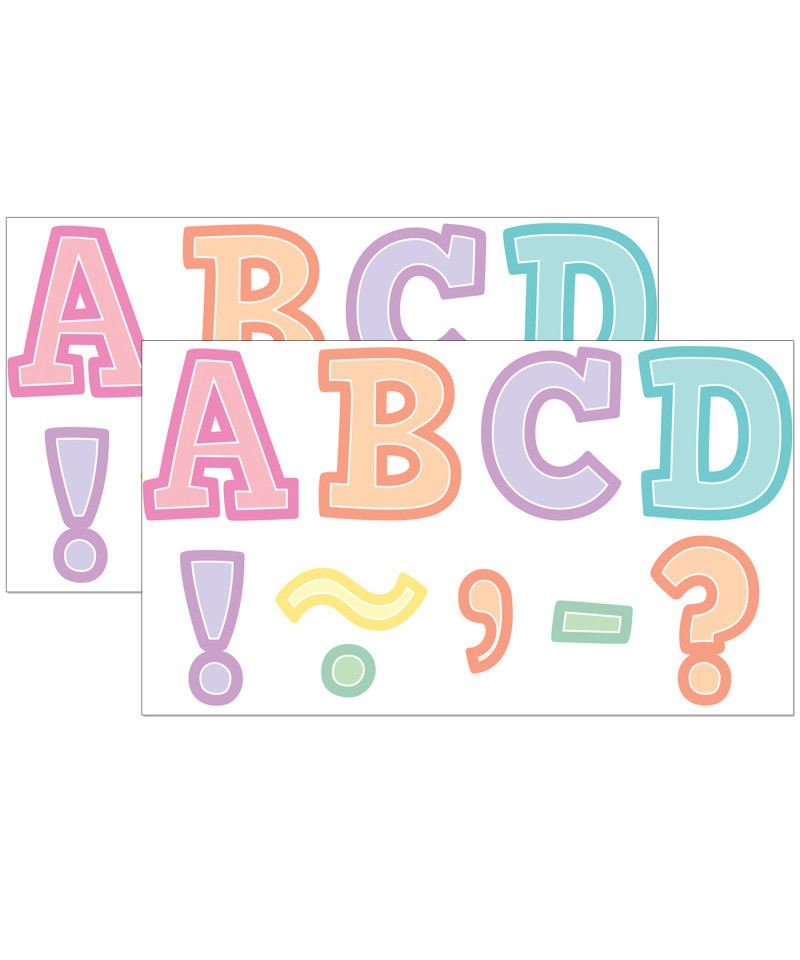 Decorate your whiteboard in a snap with Pastel Pop Bold Block 3" Magnetic Letters. This durable, reusable magnetic decor adds flair on other metal surface such as doors, desks, shelving, and bins. Works on any magnetically receptive surface! Each pack includes 55 pieces: 46 uppercase letters, and 9 punctuation marks. Sold as 2 packs for a total of 110 pieces.