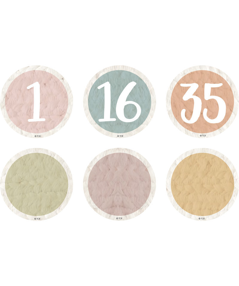 Add flair to any magnetically receptive surface such as doors, desks, shelving and bins. Decorate and educate with durable, reusable magnetic pieces. Measures 2-1/4". Each pack includes 42 total pieces: 1-35 plus 7 blank pieces.