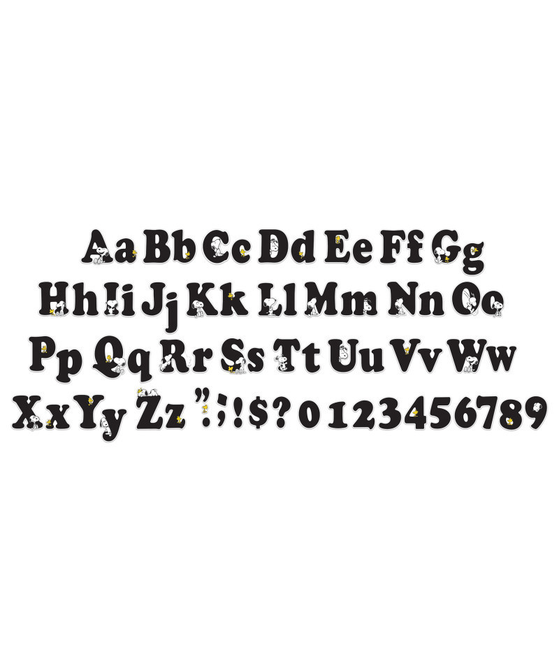 - What's Included – Set includes 210 Peanuts-style letters, including uppercase letters, lowercase letters, numerals, punctuation marks, and symbols. Design element does not appear on every letter/number and varies in placement.