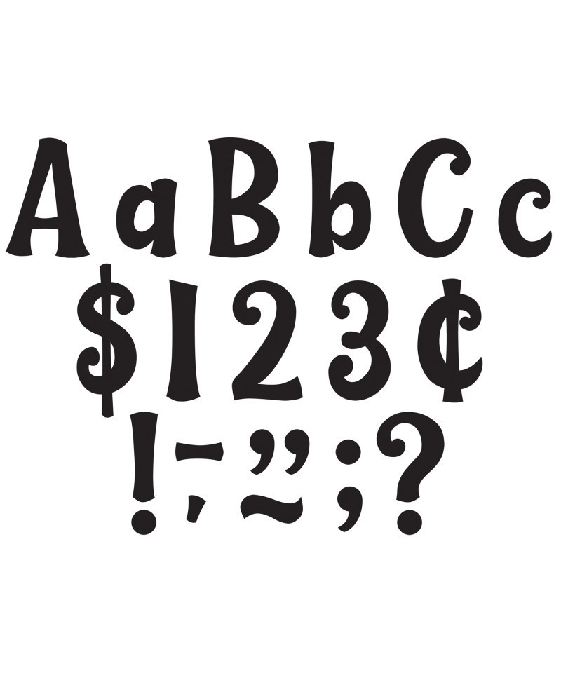 Use these letters to create bulletin boards, classroom centers, signs, banners, and other displays. They punch out easily and are coated for durability. The colors and designs coordinate with popular decorative products from Teacher Created Resources. Each pack includes 230 total pieces: 61 uppercase letters, 95 lowercase letters, 20 numbers 0 to 9, 40 punctuation marks, and 14 Spanish accent marks.