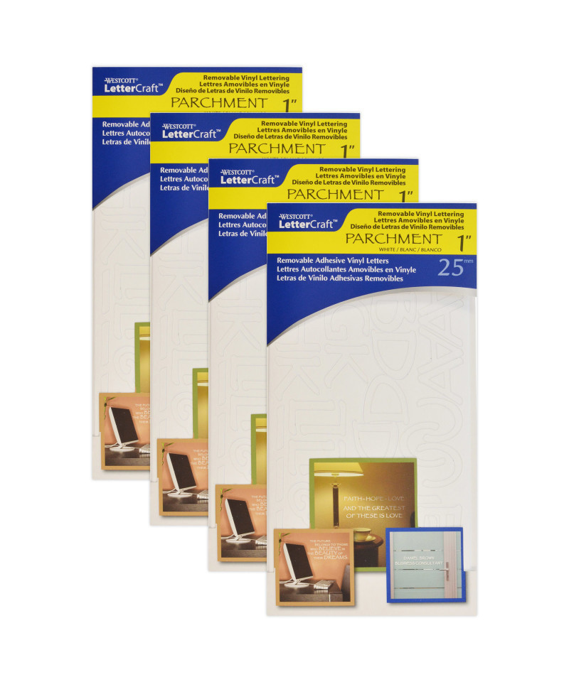 Westcott 1" LetterCraft Removable Vinyl Lettering is incredibly easy to use, ensuring a hassle-free experience. With its sharp and smooth edges, your projects will have a polished and professional look. The vinyl is coated with a removable adhesive on the back, making it convenient to remove or reposition as needed. Crafted from durable vinyl, this lettering is perfect for indoor projects that require longevity. Each pack includes 140 characters. Sold as 4 packs for a total of 560 characters.