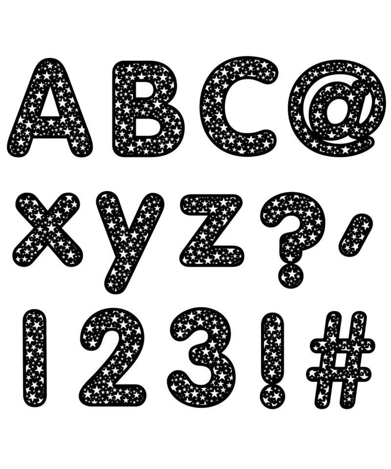 VERSATILE STAR-THEMED DECOR – Bring the bling to your bulletin boards, wall displays, and signs with these Stars on Black Designer Letters. Great for school, home, and office use.
