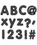 Add bling to your signs and bulletin board headlines with these dazzling Stars on Black Designer Letters. The 206 pieces include upper and lowercase letters, punctuation marks, numbers, and social media symbols. These sparkling punch-out letters are perfect for celebrating stellar students. They are also great for creating memorable banners and party signs anywhere. Approximately 4"h. Each pack includes 206 pieces.
