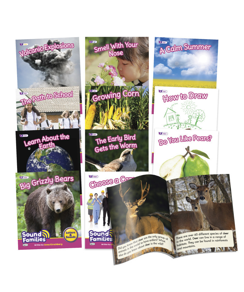 This set of non-fiction Sound Families decodable readers covers r-controlled vowel sounds (/ar/ /or/ /ur/ /air/ /ear/). There are two titles for each sound. Within each reader, alternative spellings are provided (graphemes) for the target sound (phoneme). Children can identify the target sound in the text quickly as they have been highlighted and then compare the spelling across the sound family. Other words included are decodable at the phase level as well as common exception words in accordance to the progression.