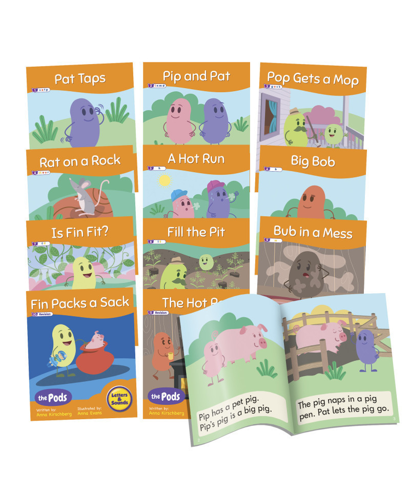 The first set of Pod readers covers the letter sounds of Phase 2, including consonants, short vowels and common consonant digraphs. There are 12 books in the set and each has been sequenced in accordance with the progression of letters and sounds.