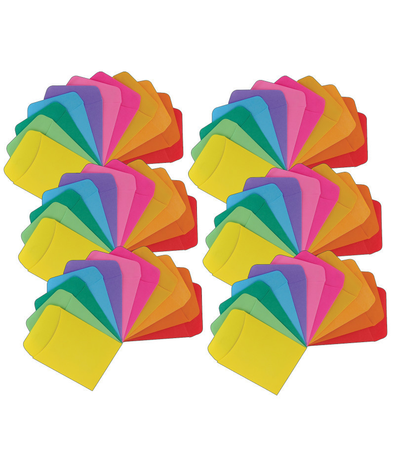Our colorful pocket envelopes are ideal for storing Hygloss flashcards and learning cards. You can also mount library pockets on the wall and use for attendance charts and job charts, or in library books for library management. Mighty Brights Pockets measure 3.5" x 5". 30 pockets per pack. 3 each of 10 colors. Sold as 6 packs for a total of 180 pockets.