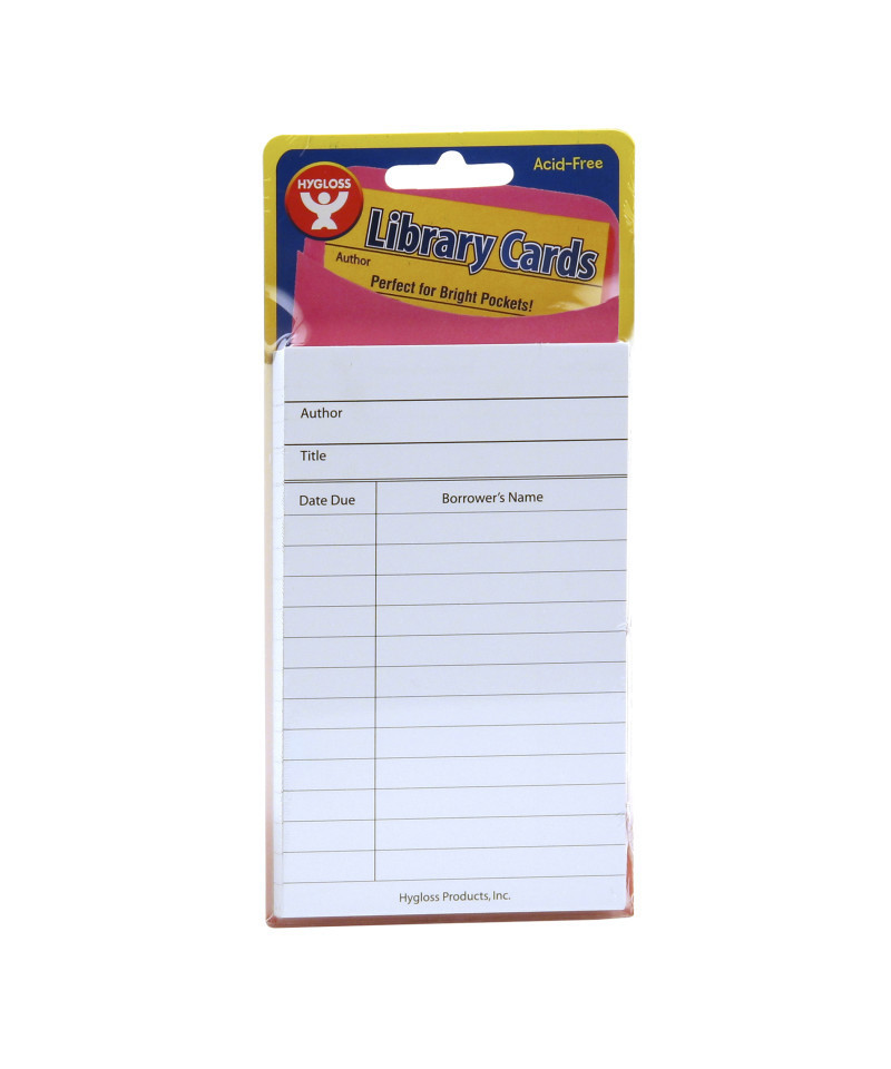 Blank cards provide a clear and wide space for heading, author, title, date due back and borrower's name.