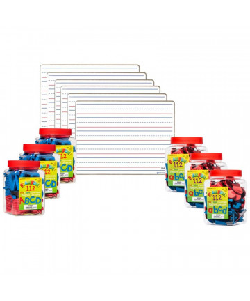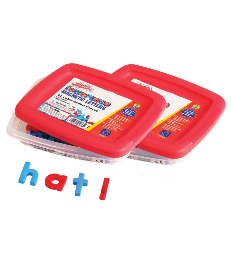 Alphabet learning will stick with these colorful sets. Kids can use the magnetized letters to create their favorite words or phrases. AlphaMagnets are shaped accurately with correct proportions, and are made with strong magnets for a ''sure stick.'' Supports hands-on activities targeting letter recognition, initial sounds, word building, spelling and more. Features more and stronger magnets than other magnetic letters to ensure each piece stays where you want it and doesn't slip. Provides examples of letters formed the same way students are taught to form them. Helps children learn the difference between consonants and vowels via color-coding. Includes extras of the letters you need most (a, e, i, o, u, b, l, m, r, s, t). All pieces measure 1.5''H each and store in a durable, stackable tub for easy cleanup. Each set includes 42 pieces. Sold as 2 sets for a total of 84 pieces.