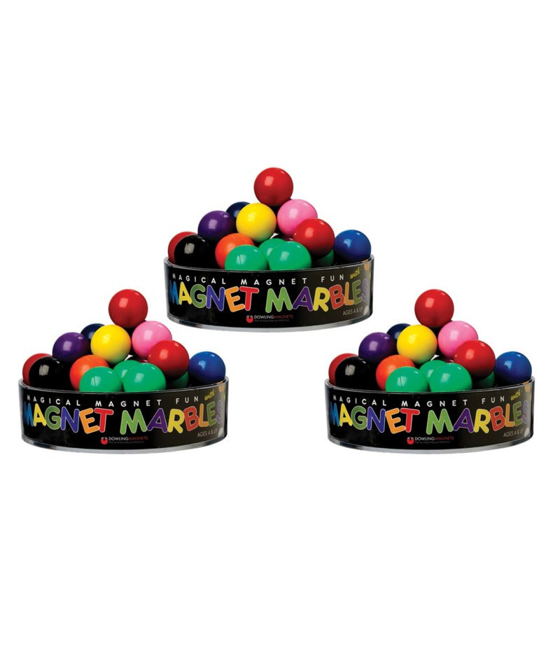 They look like ordinary marbles, but they're magnets too! Build pyramids and other fun shapes, play marble games and more. Each marble is 5/8" in diameter. Includes 20 marbles in assorted colors. Sold as 3 packs for a total of 60 magnet marbles.