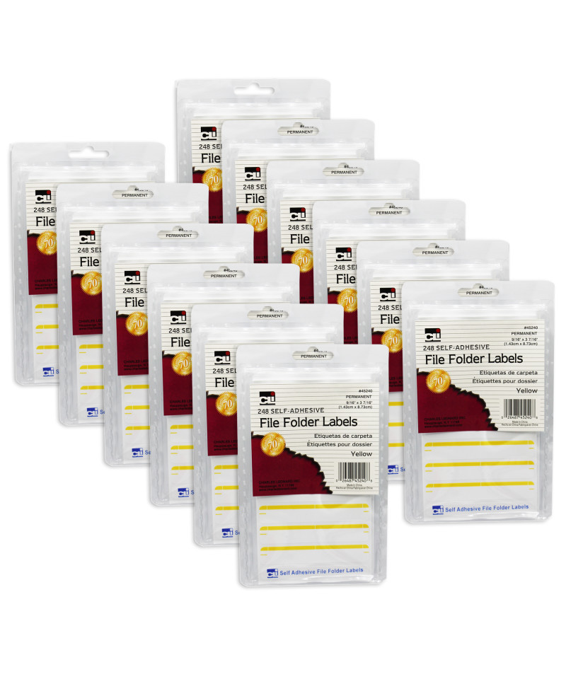 Self-sticking yellow labels feature permanent adhesive. Great for Color coding and organizing files. Labels measure 9/16" x 3-7/16". Each pack includes 248 self-adhesive labels.