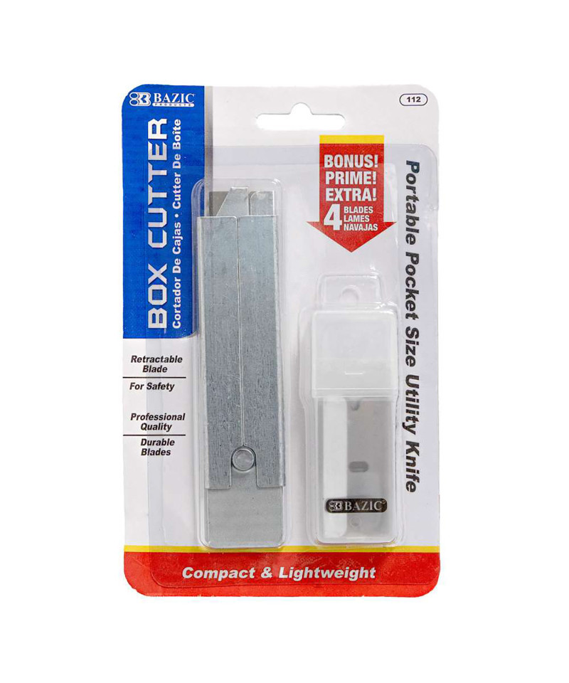 A box cutter that's reliable and durable, its blade is made of stainless steel. It's retractable, sharp, corrosion & rust resistant, and its compact size easily fits in pocket. Comes with 4 replacement blades as bonus. Cutting moving boxes, carton, carpet, leather, cardboard, rubber, fabric, wallpapers, paper, tape, plastic, foam board, DIY, art and craft projects, and more. Lightweight and full metal, design for long-lasting use. Convenient and perfect well-made cutting tool in the office, home, or warehouse.