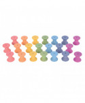 Sort, stack, roll, lace and sequence these Rainbow Wooden Spools! Made of smooth Beech wood, this 21-piece wooden set is suitable for ages 10m+. An imaginative set for open-ended, loose parts play, these wooden spools feature rainbow colors and natural wood grain. The spools also have holes for lacing activities. These tactile, multi-sensory spools endlessly fascinate toddlers with their smooth texture and calming colors. The paint is water-based and non-toxic. Colors include red, orange, yellow, green, dark blue, light blue and purple. Size: 1.4" diameter.