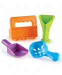 Strengthen your sensory and fine motor skills one scoop at a time! This set of 4 colorful scoopers each comes with a different skill-building action—scoop, rotate, sift and pour different materials while building hand strength, coordination, precision, and more. Makes a great addition to sensory bins at home or in the classroom. Sifter measures 5"H x 3"W.