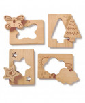 - Set of four shapes, 8 pieces: Tree, Star, Cloud and Butterfly