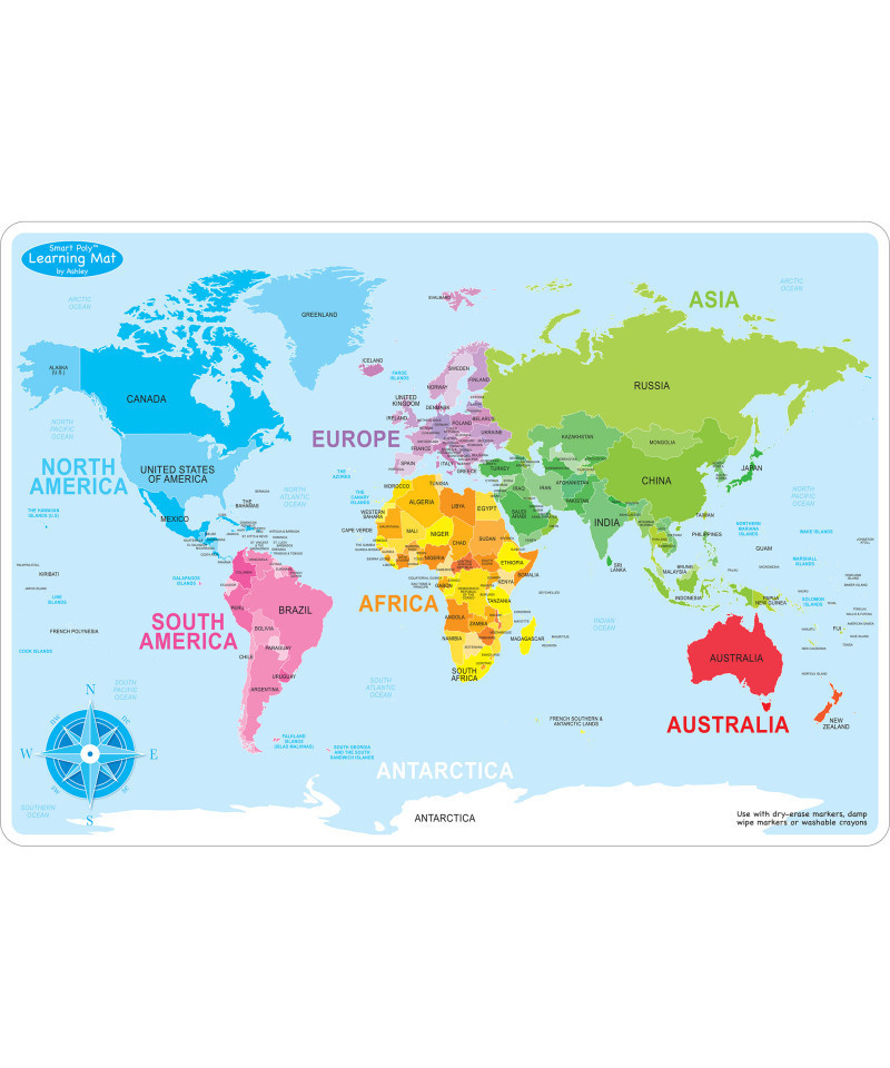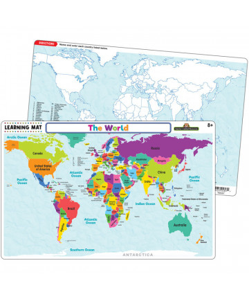 Smart Poly™ material has been designed for the classroom and home. The material is strong, durable, water resistant, and does not need lamination. Practice learning world geography with the World Basic Map learning mat. Label countries and bodies of water. Heavy duty double-sided surface for fun and colorful learning on both sides. Write-on/wipe-off surface. Use with dry erase or water based markers and washable crayons. Each side is an interactive lesson. Mat measures 12" x 17". Pack of 10 learning mats.