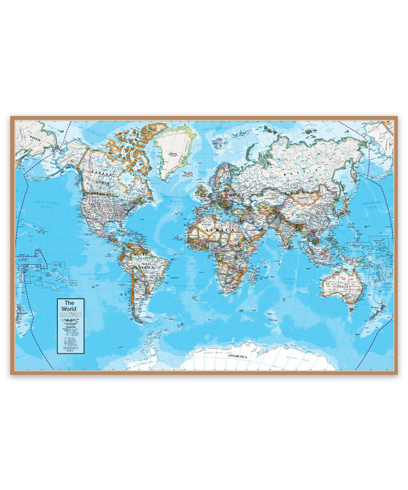 • Contemporary style wall map is great for room or office décor