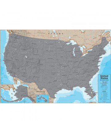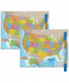 This popular Hemispheres United States map is laminated, measures 38" x 48" and is widely used. It shows capitals, cities, populations, and major interstates. Sold as a pack of 2 maps.