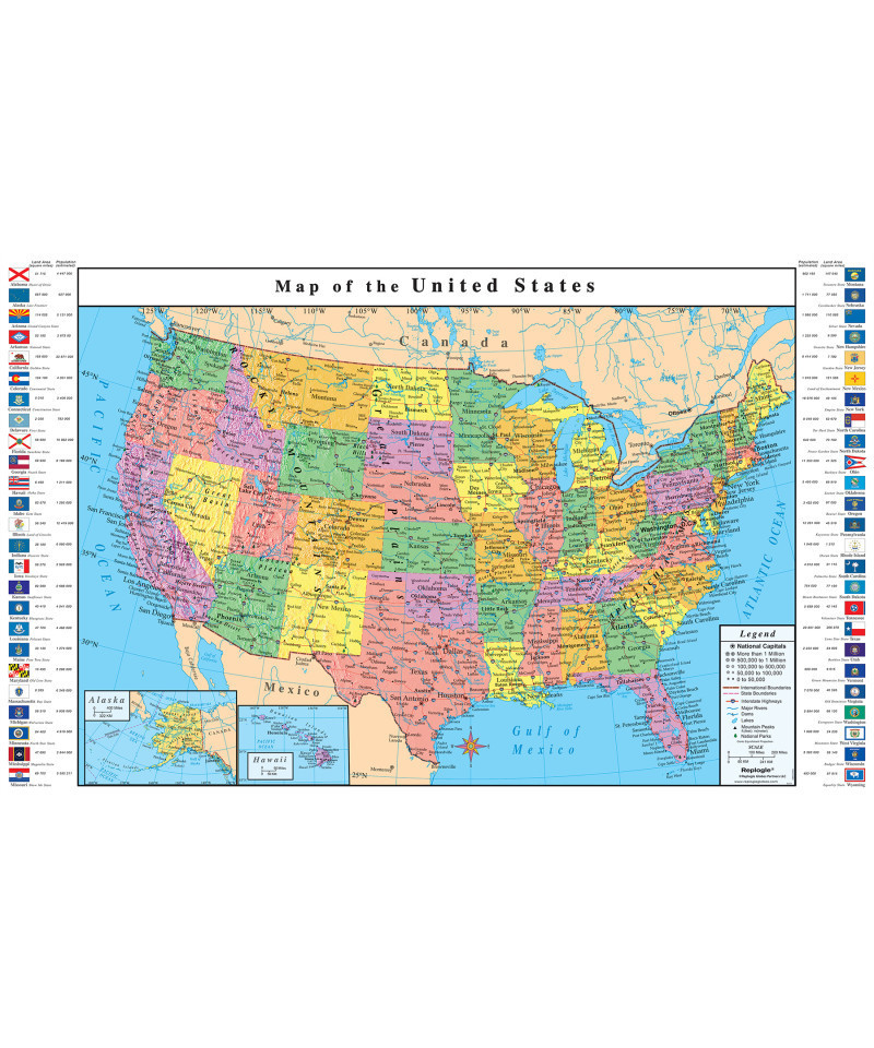 Replogle 33" x 49" USA Map is durable and framed by the flags of all 50 states