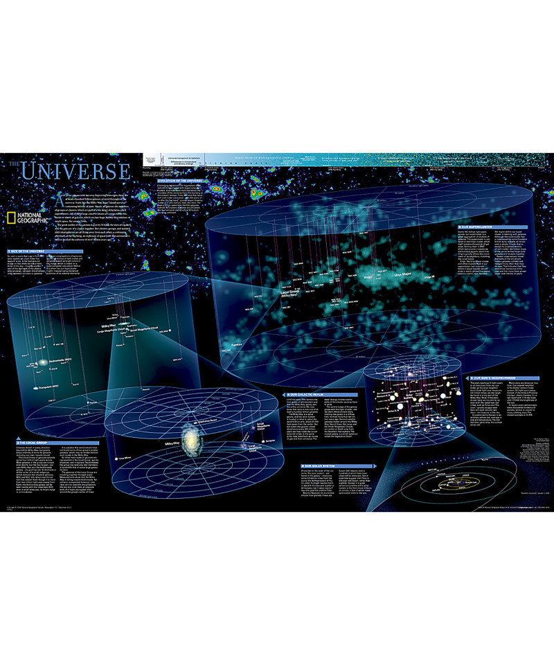 - National Geographic's Universe Wall Map, shows as far as we can see with our ever-improving telescope, at least a hundred billion galaxies arrayed throughout the universe.
