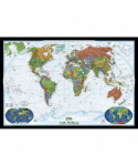 Expertly researched and designed, National Geographic's World Wall Map is the authoritative map of the world by which other reference maps are measured. Colorful Decorator style map with vibrant color palette that fills each country for easy identification. Background shows mountain ranges and valleys in subtle shaded relief with mountain ranges labeled. Major water bodies including rivers, lakes, glaciers, oceans, seas, gulfs, bays, straits, and bathymetry. Clearly defined international boundaries, cities, islands, airports, and physical features. Thousands of place names carefully and artfully placed to maintain legibility in heavily populated areas. Up-to-date international boundaries and territorial control reflect de facto status on the ground. Meticulously researched using multiple authoritative sources including the U.N., U.S. Board on Geographic Names, and policies of individual governments. Accurate place names use a combination of conventional English names, official national names, and standard transliterations for non-Latin alphabets. Drawn in Winkel Tripel projection with distortions minimized unlike other World maps (e.g. Greenland is shown the same size as Argentina, not South America). Corner inset maps feature vegetation, land use, population density, and north and south polar regions. The map is encapsulated in heavy-duty 1.6 mil laminate which makes the paper much more durable and resistant to the swelling and shrinking caused by changes in humidity. Laminated maps can be framed without the need for glass, so the frames can be much lighter and less expensive.