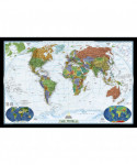 Expertly researched and designed, National Geographic's World Wall Map is the authoritative map of the world by which other reference maps are measured. Colorful Decorator style map with vibrant color palette that fills each country for easy identification.Background shows mountain ranges and valleys in subtle shaded relief with mountain ranges labeled. Major water bodies including rivers, lakes, glaciers, oceans, seas, gulfs, bays, straits, and bathymetry. Clearly defined international boundaries, cities, islands, airports, and physical features. Thousands of place names carefully and artfully placed to maintain legibility in heavily populated areas. Up-to-date international boundaries and territorial control reflect de facto status on the ground. Meticulously researched using multiple authoritative sources including the U.N., U.S. Board on Geographic Names, and policies of individual governments. Accurate place names use a combination of conventional English names, official national names, and standard transliterations for non-Latin alphabets. Drawn in Winkel Tripel projection with distortions minimized unlike other World maps (e.g. Greenland is shown the same size as Argentina, not South America). Corner inset maps feature vegetation, land use, population density, and north and south polar regions. Enlarged maps provide an immersive experience in any home or office environment. The exceptional cartography is even easier to appreciate at the larger size. The map is encapsulated in heavy-duty 1.6 mil laminate which makes the paper much more durable and resistant to the swelling and shrinking caused by changes in humidity. Laminated maps can be framed without the need for glass, so the frames can be much lighter and less expensive.