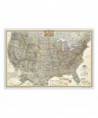 Expertly researched and designed, National Geographic's United States wall map is the standard by which other reference maps of the U.S. are measured. Antique-style "executive" color palette. All 50 states with insets for Hawaiian Islands and Alaska plus inset showing relative size of Alaska. Clearly defined state and country boundaries, cities, islands, national parks, and physical features. Thousands of place names carefully and artfully placed to maintain legibility in heavily populated areas. Background shows mountain ranges and valleys in subtle shaded relief with mountain ranges labeled. Major water bodies including rivers, lakes, gulfs, bays, straits, and ocean bathymetry. Transportation routes including interstate highways, major state routes, airports, waterways, canals, and ferries. The 36" x 24" poster size supports easy and affordable framing and mounting, and takes less wall space than standard wall maps. The map is encapsulated in heavy-duty 1.6 mil laminate which makes the paper much more durable and resistant to the swelling and shrinking caused by changes in humidity. Laminated maps can be framed without the need for glass, so the frames can be much lighter and less expensive.