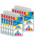 This set of conical tip washable markers is perfect for coloring and drawing. Each marker has two tips, one on each end with different colors. Conical fiber tips (like a cone shape) allow the artist to draw fine line when using the tip in vertical angle, and broad line when using the tip in tilted angles. Wash & Care tips: most clothing can be washed in warm or hot water. Do not use pre-wash or chlorine bleach, repeat laundering if necessary. Each pack includes 8 markers (16 colors). Sold as 12 packs for a total of 96 markers.