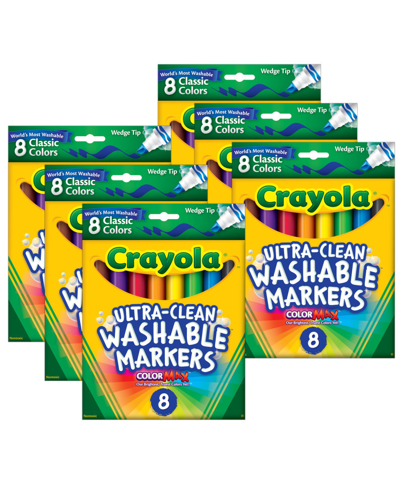 Classic Markers provide artists with classic Crayola colors that feature Color Max, our most vibrant color yet. Amp up school projects and artistic endeavors with high-quality ink that is true to color. The variety of bright colors in this pack invites imaginative expression. Crayola Markers contain recycled resin, which puts over a million pounds of plastic back to use. Bring beauty and color to your world and help keep plastic out of landfills. Each pack includes 8 Ultra-Clean Washable Markers in classic colors and peggable box. Sold as 6 packs for a total of 48 markers.