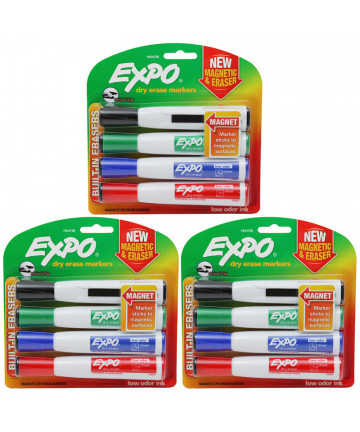 Pocket style dry erase markers feature low odor and bright vivid colors. Use on dry erase boards or glass. Markers wipe away clean and easily. Features a bullet tip and is non-toxic. AP Certified, conforms to ASTM D-4236. Each pack includes 4 markers in 4 colors. Sold as 12 packs for a total of 48 markers.
