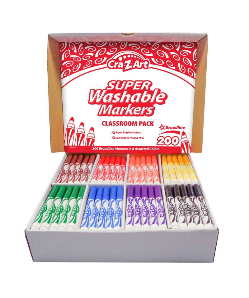 Cra-Z-Art Markers multi-pack will lend creativity to any project. Ideal for children, they are non-toxic and washable! Cra-Z-Art markers have fine tips and come in bright, classic colors. Great for classrooms! Each pack includes 200 markers in 8 colors.