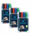 - Bullet tip for line widths 1mm and 3mm, in Assorted ink colors (Black, Red, Blue and Green), reusable wallet of 4 markers