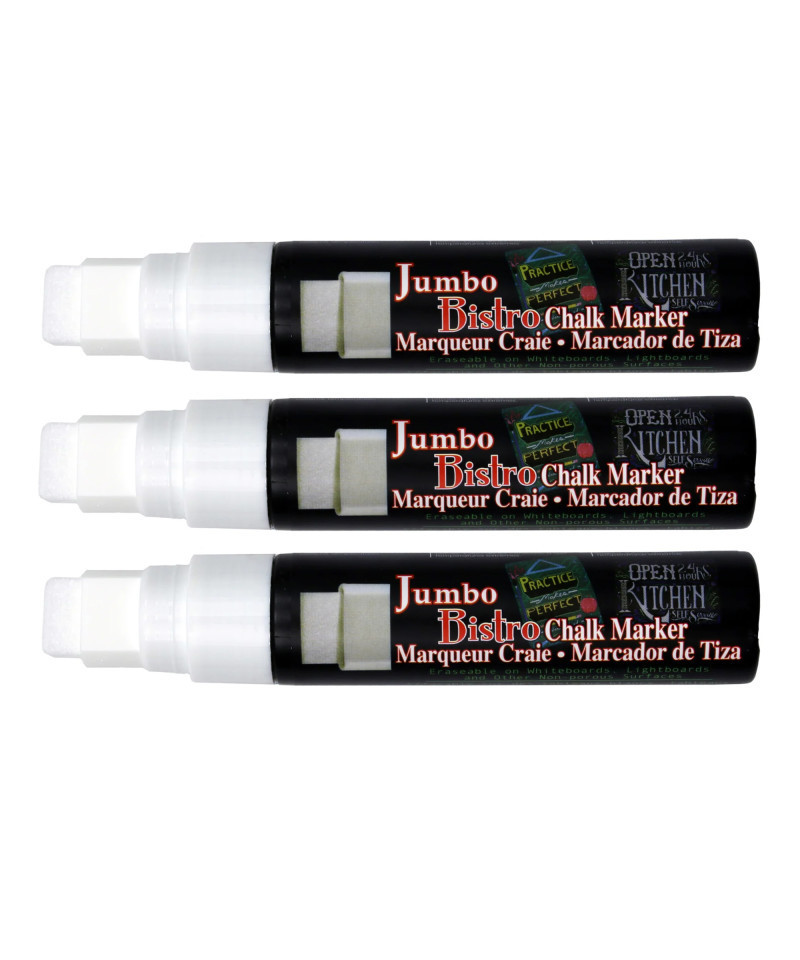 Use Bistro Chalk Markers on chalkboards, light boards, windows and windshields. A wonderful way to create chalkboard art to attract attention and increase sales. They are opaque, water based, pigmented, erasable with a damp cloth. The markers are all made in Japan from the highest quality Japanese ingredients with customer satisfaction as the prime goal. These state of the art markers are also light-fast, meaning they do not deteriorate when exposed to sunlight and they retain the most vibrant colors compared to all other chalk markers in the market! Pack of 3.