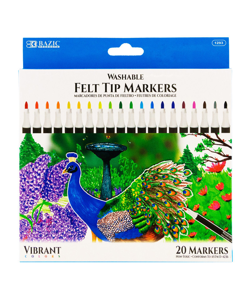 These water-based markers have a durable 2.5mm fiber tip for precise and detailed coloring. Fine line tips ensure precision while coloring in small areas of intricate designs. Excellent smudge-proof. Smooth flow brush pens accommodate all graphic styles. Perfect for coloring books, card making, and hand-lettering. Quick-dry, no trouble with smudging or bleeding, no ink flow issue or skipping. Stored compactly in clear plastic box. It is convenient for kids to pick out, use, and place it back. Creative art craft supplies present for teachers, kids, friends, Christmas, Thanksgiving, and Birthdays. High-quality ink blends seamlessly to create beautiful coloring effects. Each pack includes 20 markers.