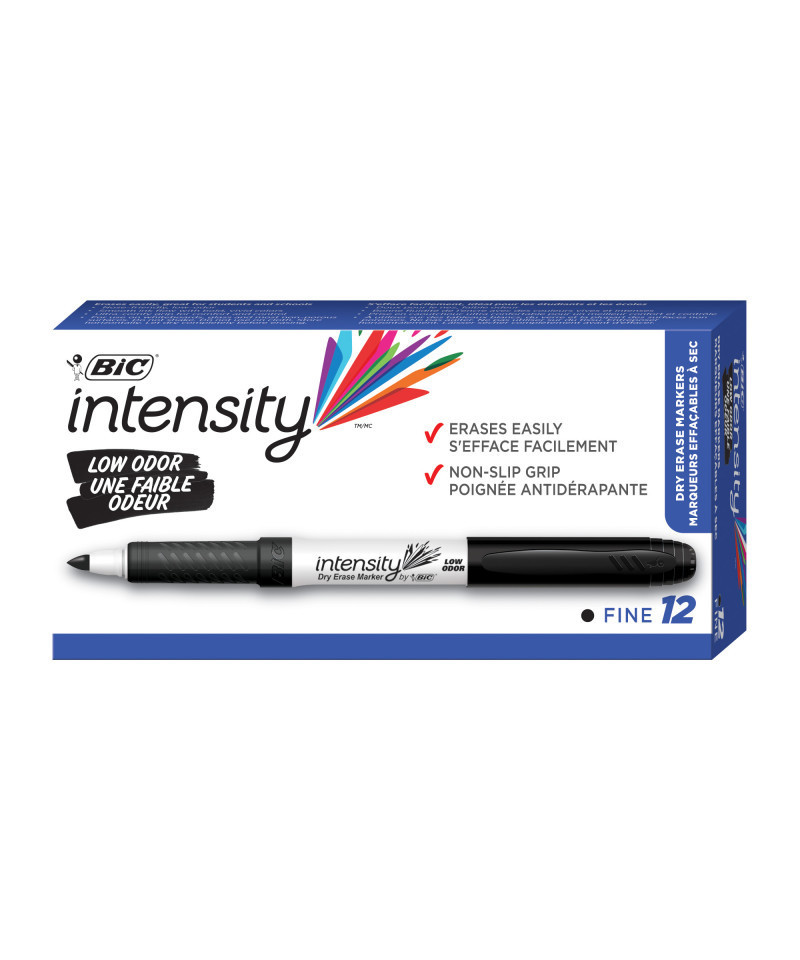 - 12-Count Pack BIC Intensity Low Odor Dry Erase Marker, Black