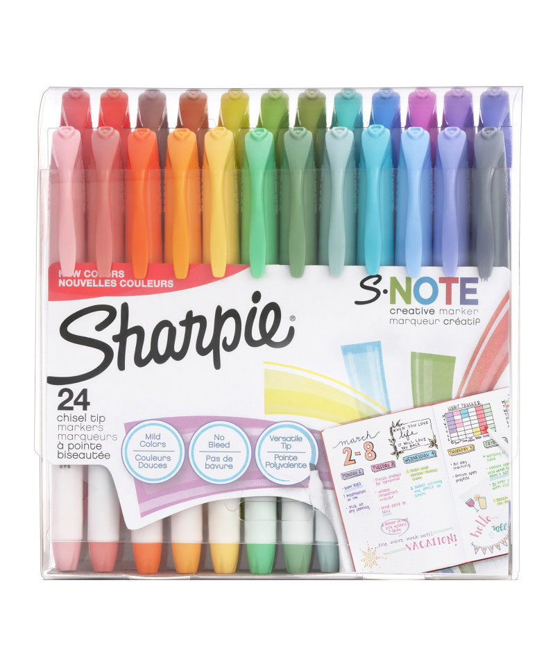 Ignite your imagination with Sharpie S-Note creative markers. Versatile and fun, they're both a marker and a highlighter, adding a splash of color to note-taking, underlining, highlighting, drawing and more. Versatility is the name of the game with a chisel tip that lets you quickly switch between precise and broad lines. Plus, the no-bleed ink keeps your work looking clean. Unleash your creativity with Sharpie S-Note! Pack of 24.